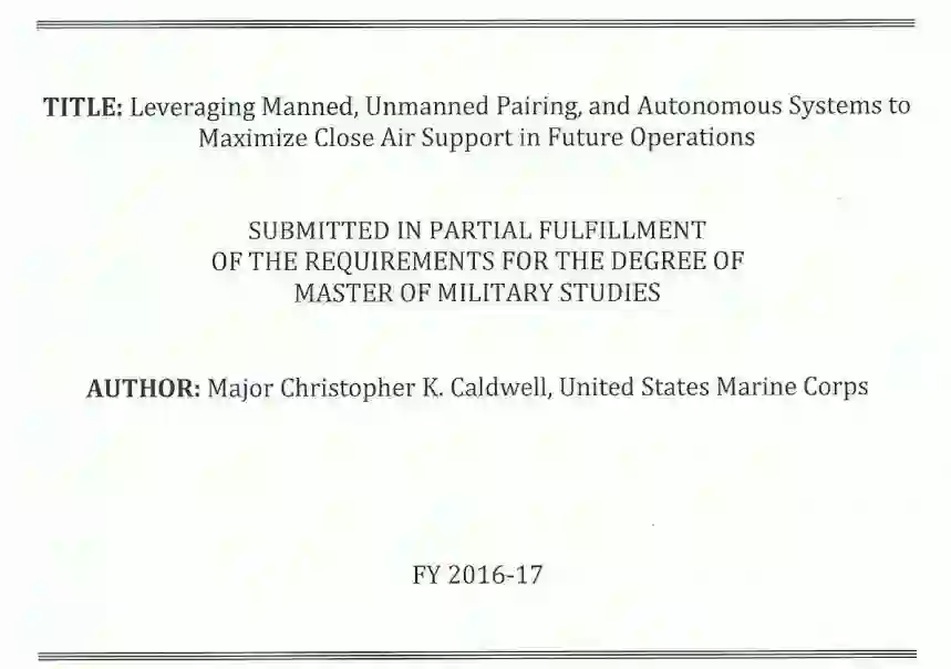 美海军陆战队应投资于现有的武装无人机系统 (UAS),并进一步完善成对和自主系统,以最大限度地发挥无人系统的技术优势。