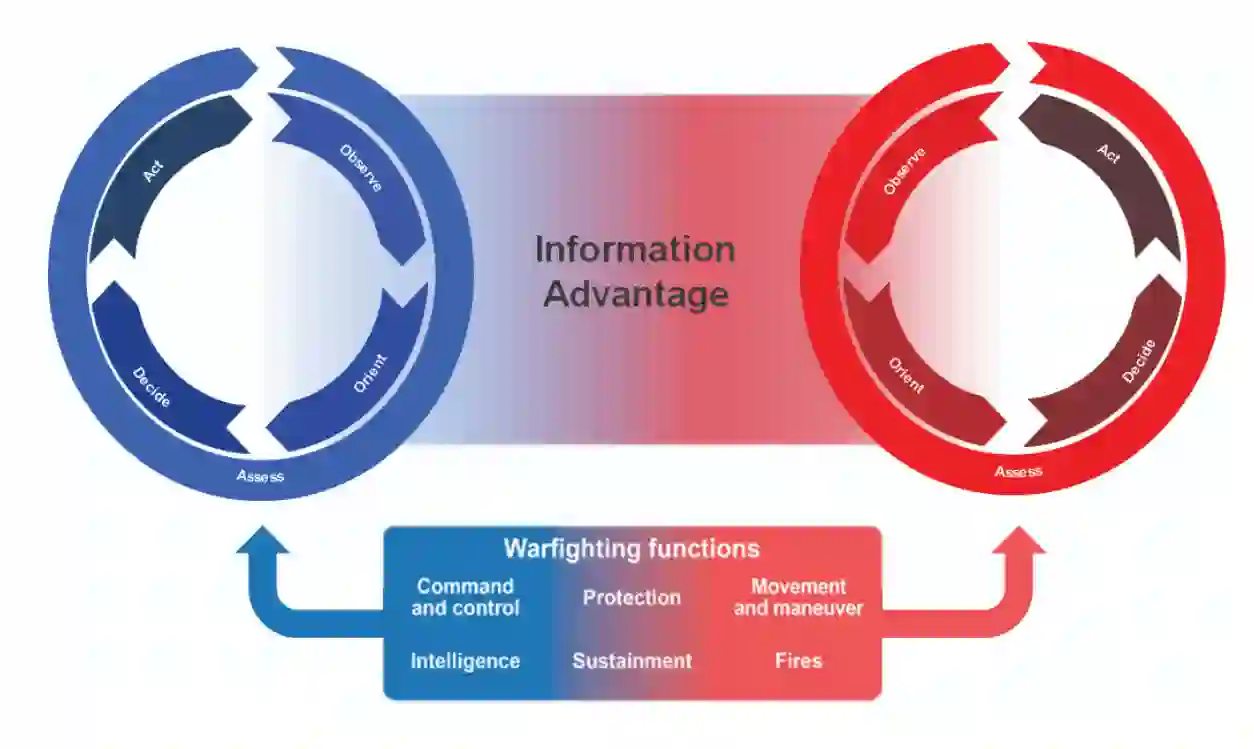 为了充分实现MDO的要求,军队需要了解如何实现信息优势。这种理解始于一个坚实的框架。FM3-0的更新和即将发布的ADP3-13是正确的第一步。然而,任何信息优势框架要想被采纳,都需要与战备状态和作战功能明确联系起来。如果没有这种联系,信息优势的规划将继续被那些习惯于处理信息的群体所垄断,而不是按照要求在整个部队进行。虽然陆军对OE的做法比联合部队目前使用的模式有所改进,但ADP 3-13草案在提供一个明确整合信息和各种作战功能的框架方面存在不足。陆军需要一个更新的框架,纳入约翰-博伊德的决策理论和他的OODA循环。作战功能的作用是加强友军的决策周期或削弱对手的决策周期。通过将信息优势的核心目标设定为更有效的决策的助推器,军事人员可以将他们在信息层面的影响概念化,而不考虑作战功能。这种影响,以及大多数信息优势活动,都集中在OODA循环的观察和定向步骤上。这种明确的重点,嵌套在决策框架内并与MDO的必要条件相联系,使每个作战职能部门能够在复杂的作战环境中有效地规划信息优势。