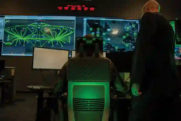 (2020年2月5日,美海军陆战队网络空间司令部的海军陆战队员在马里兰州米德堡的网络作战中心观察计算机操作)