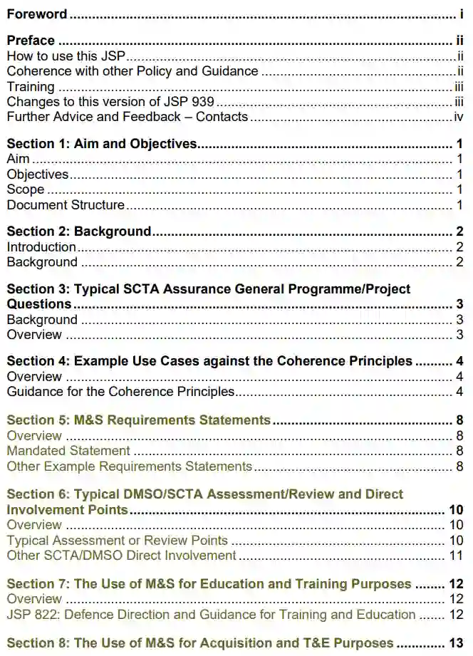 本文件JSP 939 第 2 部分提供了如何应用该政策的指导。对提供指导的方式进行了更新,使 JSP 939 对 M&S 用户来说更易于理解和使用。为每个 M&S 应用和重点领域创建了一个模板,就如何应用该政策提供量身定制的具体建议和指导。目的是根据需要开发和迭代这些模板,并制定了一项工作计划来定期更新第 2 部分。