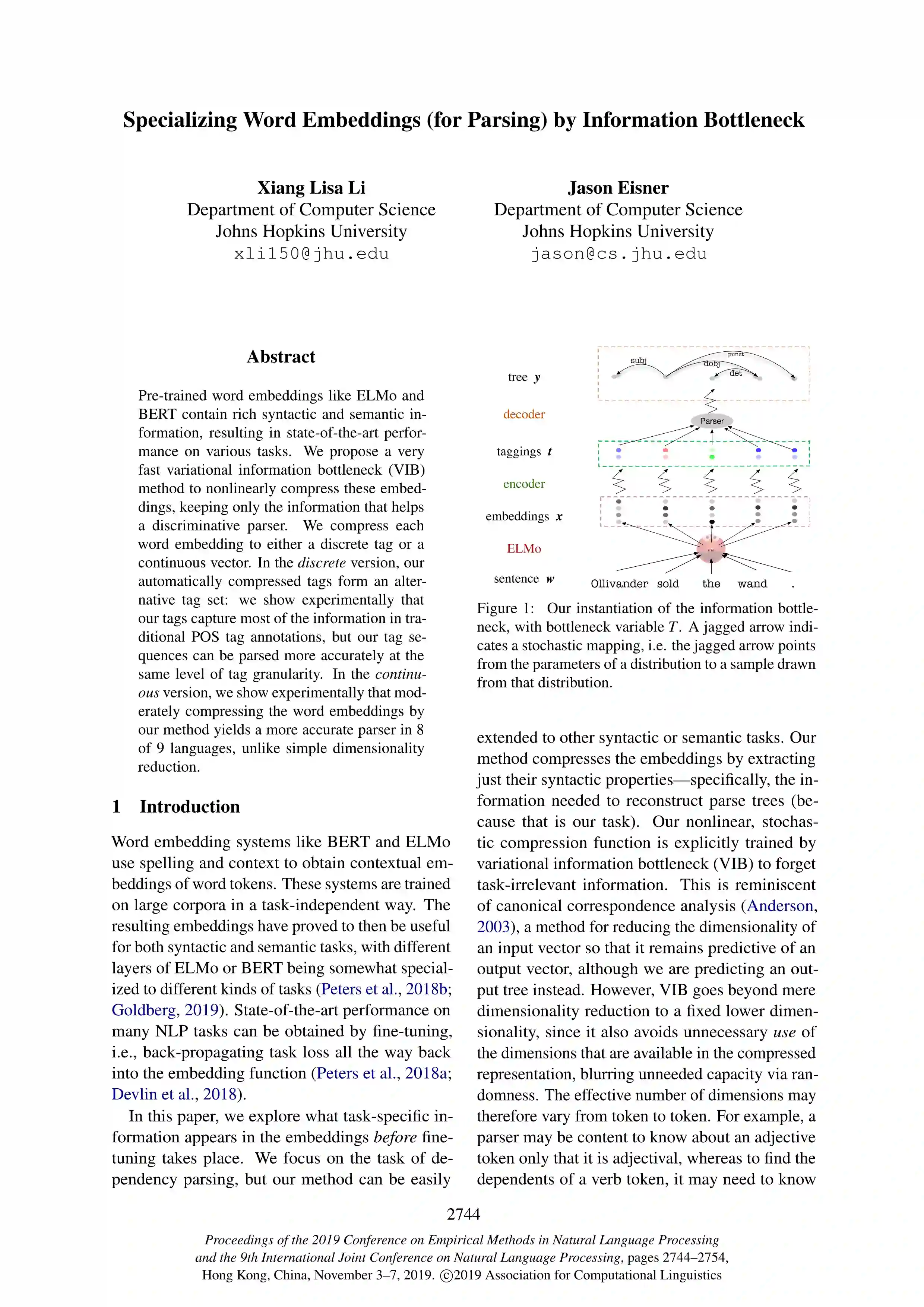 论文题目: Specializing Word Embeddings(for Parsing)by Information Bottleneck