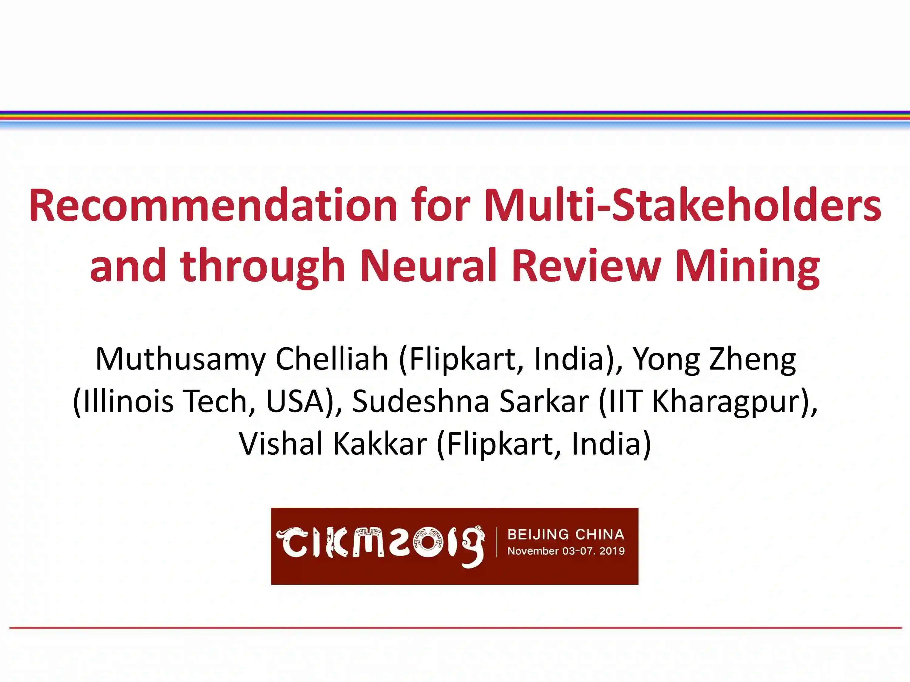 推荐系统能够根据用户的偏好生成推荐项目的列表,而最终用户是这些传统系统中唯一的利益相关者。但是,在几个应用程序领域(例如电子商务、电影、音乐)可能有多个涉众。通过平衡不同利益相关者的需求来提出建议是必要的。本教程的第一部分介绍了多涉众推荐系统(MSRS)的几个案例研究,并讨论了MSRS中相应的方法和挑战。MSRS中目前的工作之一是基于实用价值的多利益相关者推荐模型,该模型利用多标准评级来构建实用价值函数。但是,在任何领域或应用程序中可能并不总是提供多标准评级或首选项。评论挖掘通常用于从文本或评论中提取用户偏好。它可能被用来推断项目不同方面的用户首选项。本教程的第二部分将介绍和讨论神经审查挖掘的建议。电子商务平台上的评论可以用来解决冷启动问题并生成解释。我们之前的教程介绍了对产品和主题模型/分布式表示的基于方面的情感分析,它们弥补了用户评论和产品描述之间的词汇差距。本教程第二部分的重点是介绍最近用于检查文本挖掘的神经方法--包括用于增强产品推荐的实际代码。每个部分将介绍各种机制(如注意力)和任务(如评论排名)视角下的主题,介绍前沿研究和使用真实数据集在Jupyter笔记上执行的程序的训练。