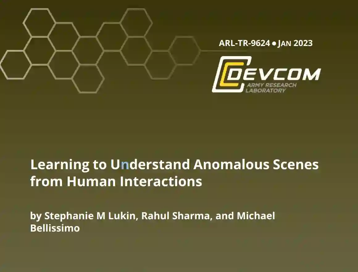在美国陆军作战能力发展司令部陆军研究实验室,正在研究行为、建立数据集并开发异常分类和解释技术,其中自主智能体可生成对可能包含异常属性的环境的自然语言描述和解释。这项技术将支持在不确定条件下做出决策,并支持士兵和机器人队友在网络受限的情况下,在未知或危险环境中完成探索性导航任务(如自然灾害后的搜救)的弹性自主机动。在本报告中详细介绍了我们的贡献如下:借鉴视觉异常检测方面的相关工作,设计了异常分类法;设计了两个在虚拟环境中进行的实验,根据分类法操纵虚拟环境以显示异常属性;收集了一小部分人类语音和人机对话语料,用于异常检测和解释任务;最后,设计了一个新颖的注释模式,并将其应用于的语料库子集。