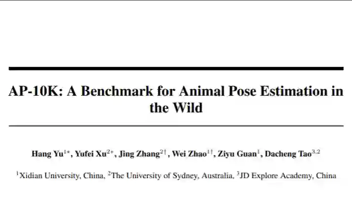 准确的动物姿态估计是理解动物行为的关键,它为诸如野生动物保护之类的许多下游任务创造了基础。先前的工作只包含了有限的动物种类,忽略了动物的多样性,这限制了神经网络的泛化能力。最近,京东探索研究院联合西安电子科技大学、悉尼大学提出了AP-10K[1]:第一个大规模的哺乳动物姿态数据集。AP-10K中包含大约1万张标记有姿态信息的哺乳动物图片,这些图片从生物学的角度,又被归纳为23科,54个物种。我们在该数据集的基础上研究了动物姿态估计问题,研究的问题包括:有监督学习下的动物姿态估计;人体姿态估计和动物姿态估计模型的迁移性能;属于同科的物种和不同科之间的物种与泛化性能的关系等。这些实验有力地证明了动物多样性对有监督姿态估计问题带来的准确率和泛化能力的提升。AP-10K数据集为动物姿态估计的未来研究开辟了新的方向。目前AP-10K数据集已经集成到mmpose框架。