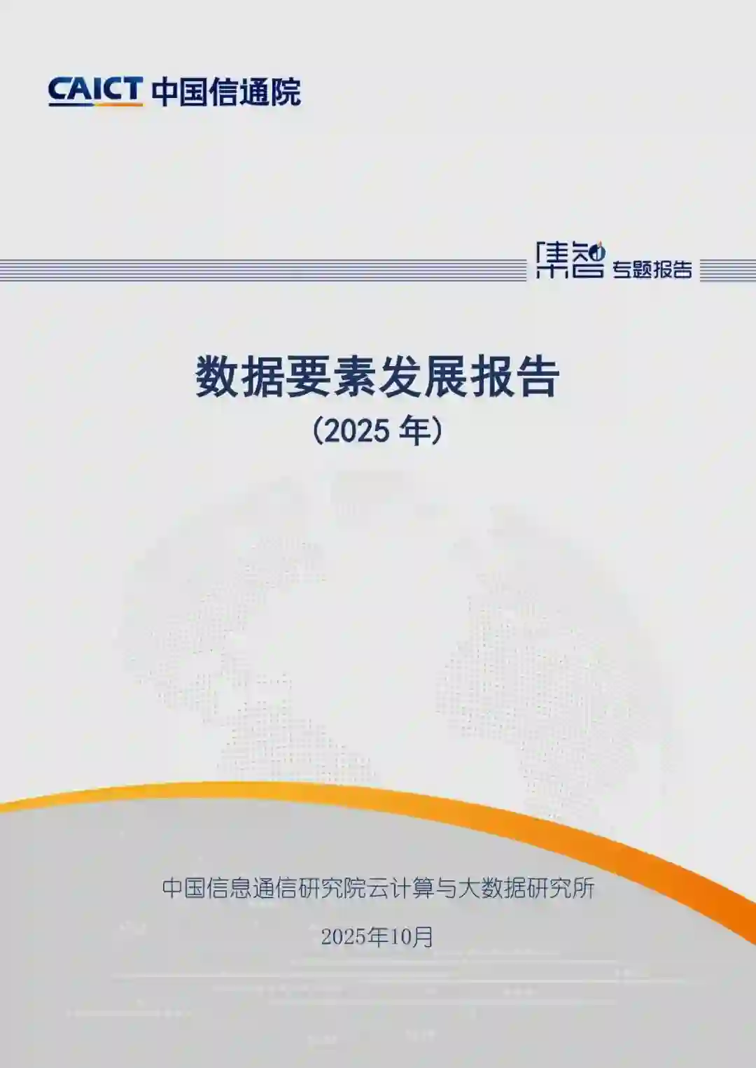 《数据要素发展报告(2025年)》是中国信息通信研究院云计算与大数据研究所在2025年10月发布的权威研究成果,系统阐述了智能时代数据要素的战略价值与发展路径。报告以党的二十届三中全会精神和2025年政府工作报告为指导,紧扣"人工智能+"行动深入推进的战略机遇,提出数据要素价值释放需贯穿"供得出、流得动、用得好、保安全"四大关键环节,并构建了数据要素从一次价值(支撑业务贯通)、二次价值(赋能数智决策)到三次价值(促进流通赋能)的递进式价值释放理论体系。