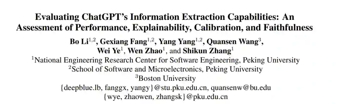 该研究旨在通过各种信息抽取(information extraction, IE)任务对ChatGPT的性能进行全面研究和详细分析。IE涉及异构结构提取、事实知识使用和多样化目标(Yamada等人,2020;Paolini等人,2021;Lu等人,2022),使其成为评估ChatGPT能力的理想场景。总之,我们基于7个细粒度IE任务的14个数据集进行了实验和分析(§4)。此外,我们通过自检和人工检对ChatGPT回复的可解释性、校准和忠实度进行了评估(§5)。