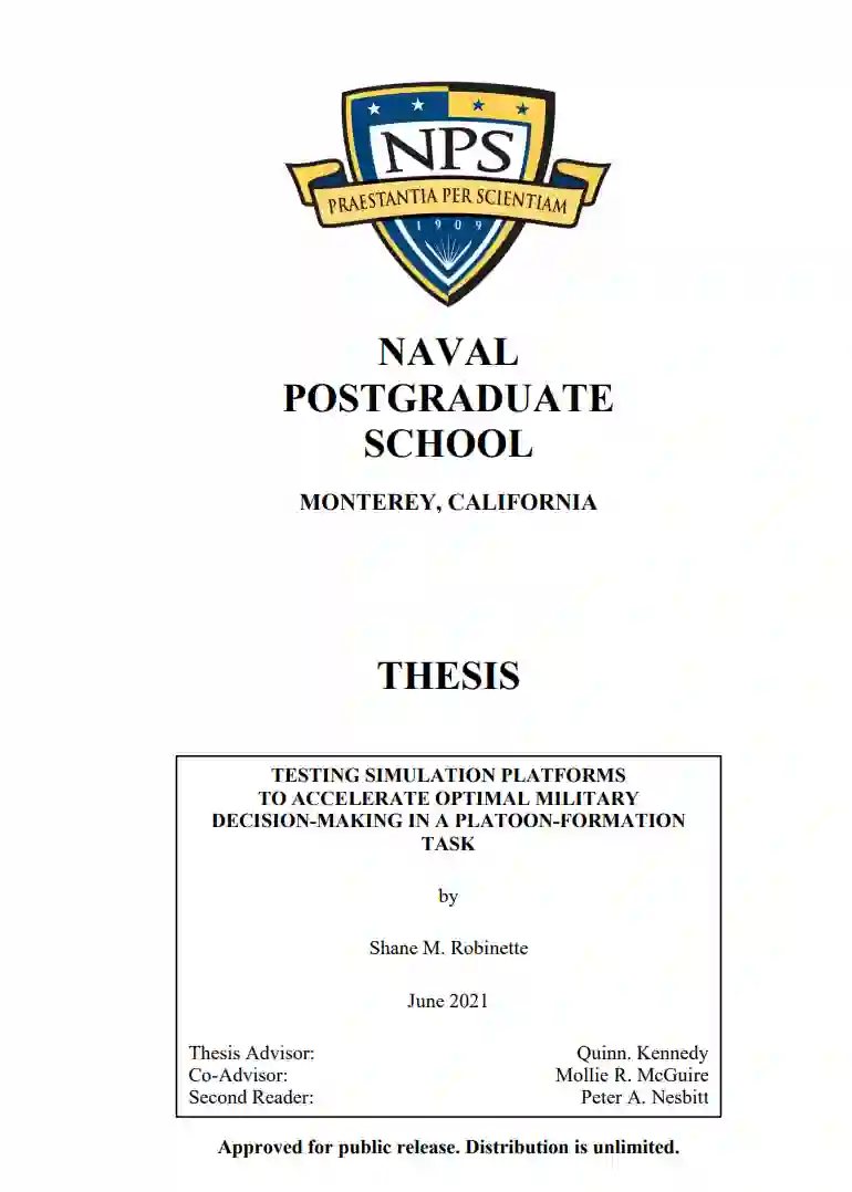 训练一名步兵军官在军事行动中选择适当的排队,传统上需要投入大量的训练资产。步兵训练将受益于在普遍可用的平台上进一步发展高容量的训练。2018年,创建了一个基于计算机的模拟排编队决策任务(PFDT),并利用认知与绩效目标训练干预模型(CAPTTIM)来确定哪些参与者达到了最佳决策以及何时发生。本研究在该工作的基础上,在两个流行的平台上完善和测试PFDT。PFDT包括32个场景,每个场景随机呈现四次,总共128次试验。在这些场景中,有五个因素被操纵,一个中小企业确认了最佳、可接受和差的决策反应。基础学院和海军研究生院的27名学生在三种平台中的一种完成了PFDT:平板电脑、虚拟现实(VR)或带编队的VR(为参与者提供在虚拟背景上描绘编队的能力)。CAPTTIM表明,在达到最佳决策所需的试验数量上不存在平台效应。此外,参与者的经验水平并不影响专家或新手在对方之前达到最佳决策。因此,PFDT是一个可行的军事训练模拟器,无论所使用的技术平台或步兵训练的数量如何。