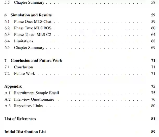 第5章概述了MLS在MDO UxS情况下的方法和实施。它描述了MLS和ROS的结构。它概述了协议功能概述,代码开发阶段,以及为支持实施而创建的核心功能。它还涵盖了用于创建MLS指挥和控制(C2)应用程序(MLS C2)与ROS接口的分步方法概述。