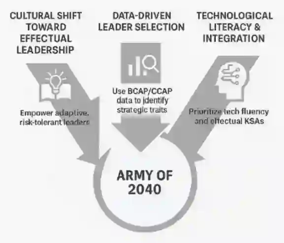 人才管理改革是使领导力匹配2040作战需求的关键支柱。陆军现行体系往往资历优先战略素养(如技术能力与适应性),若不实施深度改革38,难以为关键岗位配置合格领导者。报告主张培养具备高流动性智力、战略思维与求知欲的指挥人才(附件H《知识、技能与行为规范》详述)。乌军技术专家下沉编队的实践印证需具备技术整合能力的领导者。必须通过"旅级指挥员评估计划"等培训选拔机制,激励决策者践行风险阈值管理与突发事件转化等实效原则。然而惧错文化与体制惯性构成重大障碍,需融合评估数据、发展机遇与战略人力规划形成整体方案,方能培育创新文化土壤。陆军必须优先提升认知多样性与技术素养,以实现附件J规划的预见性、适应性与去中心化特质。人才管理改革若失败,将削弱新兴技术的作战效益,危及军队维持机动优势的能力。