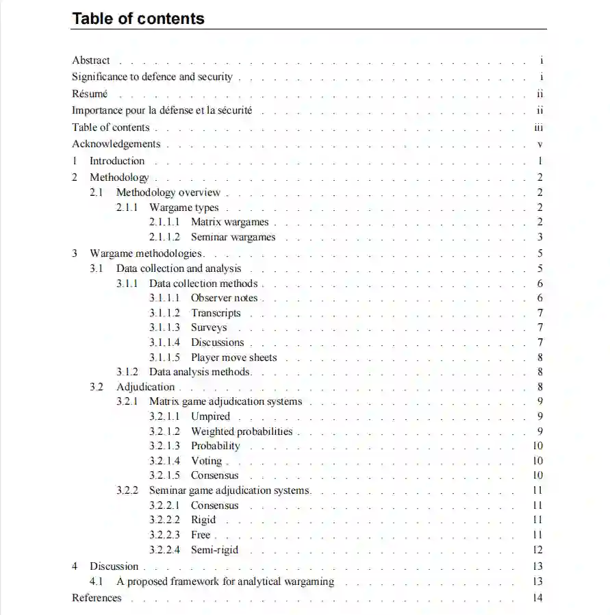 本文来自于对现有学术文章、游戏报告和会议记录的文献回顾。它还得到了美国、英国和加拿大的兵棋推演从业者的访谈数据的补充。此外,本文并不是对DRDC--作战研究和分析中心(CORA)或其他机构的现行做法的批评;相反,它只是代表了某种可以补充现行做法的分析性兵棋推演框架。