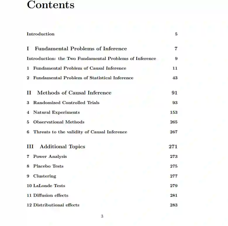 这意味着: 了解编码因果关系的基本语言,了解推理的基本问题和直觉估计的偏差,了解计量经济学方法如何恢复治疗效果,能够计算这些估计值连同估计精度使用统计软件R。 这本书是为教学因果推理的研究生,希望运用因果推理的统计工具。提供了理论结果的演示,但最终目标不是让学生再现它们,而主要是使他们更好地理解他们将使用的工具的基础。重点是理解问题和解决方案,而不是理解后面的数学,即使数学存在并被用来严格地传达概念。所有的概念和估计值都是用一个数值例子和模拟来介绍的,以便每个概念都被说明,并显得更直观的学生。