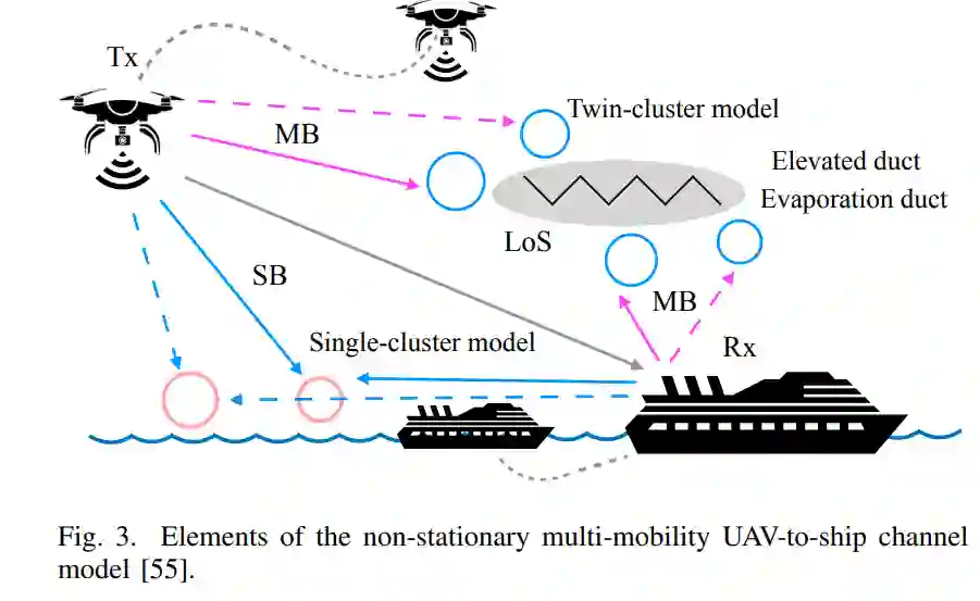 本节将分析无人机辅助MCNs设计和部署中涉及物理层问题的各种研究成果。在这种情况下,在向终端用户提供可接受的QoS的同时,应该考虑的主要设计目标包括为5G/6G启用的通信进行适当的信道建模,考虑到恶劣的海上环境,以及数据速率最大化和节能传输,以应对无人机有限的电池寿命。