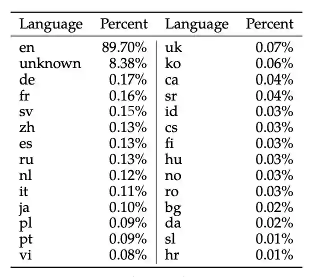 Llama-2 预训练使用了来自公开可用源的 2T个数据token(未详细指出具体的开源数据)。Llama-2-Chat 还在为此项目创建的27,540个提示-响应对上进行了额外的微调,其表现优于更大但质量较低的第三方数据集。为了实现AI对齐,使用了包含1,418,091个Meta示例和七个较小数据集的组合的人类反馈强化学习(RLHF)。在Meta示例中,平均对话深度为3.9,Anthropic Helpful 和 Anthropic Harmless集合为3.0,包括OpenAI Summarize、StackExchange等在内的其他五个集合的平均对话深度为1.0。微调数据包括公开可用的指令数据集以及超过一百万个新的人类标注示例。 在预训练过程中,Llama-2对数据的安全性进行了全面考量。通过对预训练数据进行分析,Llama-2能够增加透明度,并发现潜在的问题根源,如潜在的偏见。Llama-2采取了一系列措施,包括遵循 Meta 公司的隐私和法律审查流程,排除已知含有大量个人信息的网站的数据。此外,Llama-2未对数据集进行额外的过滤,以使模型在各种任务中更广泛可用,同时避免过度清洗可能导致的意外人口统计消除。对于语言的代表性和毒性的分析,Llama-2使用了相应的工具和数据集,以了解预训练数据的特征,为模型的安全调整提供指导。这一过程确保了我们的模型在安全性方面得到了充分的考虑,并促使我们在部署模型之前进行了重要的安全调整。 Llama 2的预训练主要集中在英语数据上,尽管实验观察表明模型在其他语言方面已有一定的熟练度,但由于非英语语言的预训练数据量有限,其熟练度受到限制(如下图所示)。因此,该模型在非英语语言中的性能仍然脆弱,应谨慎使用(说明多语言能力差:有可能是词表较小导致)。