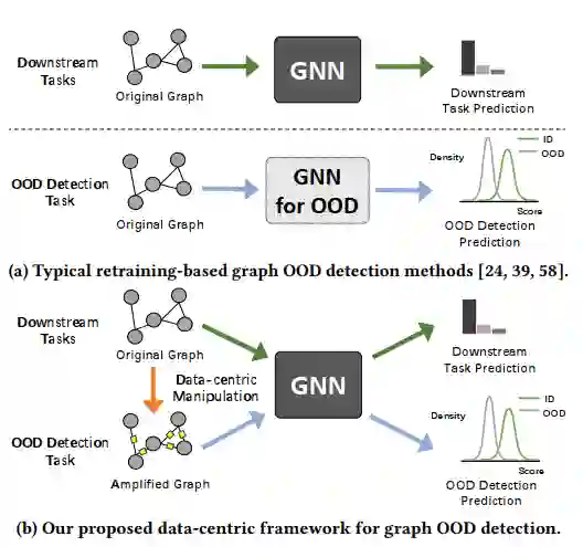 在这篇论文中,我们创新地提出研究基于重用的图OOD检测问题,目标是赋予任意训练良好的GNN识别OOD图的能力。为此,我们提出了一个名为AAGOD的数据中心框架,通过在原始输入图上叠加放大器,来扩大ID和OOD图之间的分数差距。具体来说,我们提出可学习的放大器生成器,生成特定于图的放大器,并设计了一种有效的正则化学习策略用于参数训练。在五对真实世界数据集上的广泛实验表明,AAGOD可以成功地使多种训练良好的GNN擅长于图OOD检测。AAGOD在图OOD检测中明显优于最先进的基线,且享有34倍的训练速度。此外,我们还通过案例研究更直观地理解了学习到的特定于图的放大器。