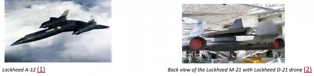 冷战初期,美国亟需一款能持续维持超音速飞行与高海拔作业的侦察机,委托洛克希德公司提供解决方案。洛克希德遂推出黑鸟系列飞机,该家族按时间顺序包含:•A-12(1963年首飞);•YF-12(A-12的截击机型);•M-21(D-21无人机发射载机);•SR-71(1964年设计,1968年A-12退役后接替其任务)。