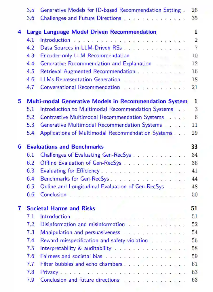 介绍了生成推荐系统的特定评估指标和基准,解决了输出复杂性和系统性能等挑战。 * 第7章:社会危害与风险
