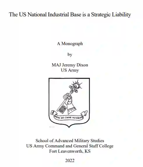 本专著解释了为什么美国政策制定者必须审查和更新国家技术与工业基础(NTIB)的资源配置,以便满足第三次世界大战动员的估计需求,国防部(DoD)须转移军事力量,以便更准确地与地区对手保持一致。国家技术与工业基地和军事规划人员需要遵循纳西姆-塔勒布的思想,努力将国家技术与工业基地系统推向反脆弱的基础。这一思想的基本原则是投资于正确的人,通过选择广泛的多样化来规避风险,承担风险以寻找机会,以及只在必要时才对系统进行干预。要支持美军大规模作战行动的作战理念,就必须整合 NTIB;要在冲突竞争领域击败并挑战大国,就必须采用多域作战的未来作战理念。对美国第一次世界大战和美国与德国第二次世界大战动员工作的案例研究进行了分析,以提供经验教训。