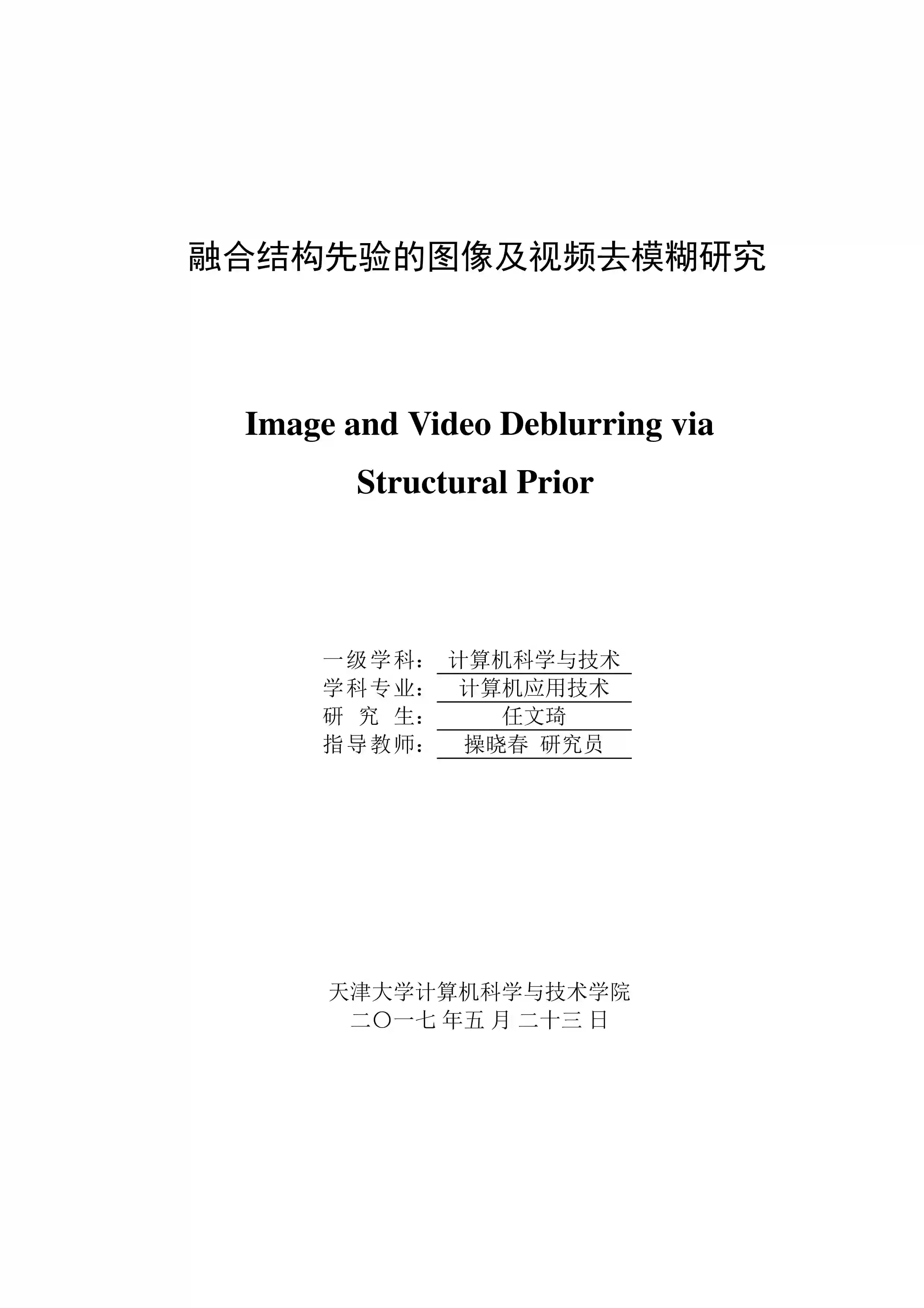 关键词: 图像去模糊,文字图像去模糊,视频去模糊,稀疏表达,低秩表示,像素级非线性模糊核,光流,语义分割