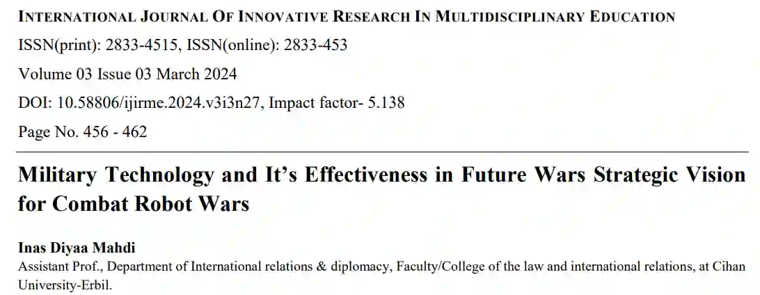 人类不再仅仅拥有先进的肌肉或军事能力,甚至没有核武器,而是开发出了一代先进的高破坏性电子机器,以取代人类来管理血腥的战争。然而,毁灭性技术将把人类的未来带向何方?当机器人的大脑发展到超越人类智慧之后,国家的命运是否会被机器人控制?是人类能够控制下一个技术挑战,还是机器人将控制国家和民族的命运?根据上述问题,提出了一个假设,即在未来战争中,战斗机器人对军事技术的控制会越来越强,从而导致人类决策者失去对政治生活的控制。