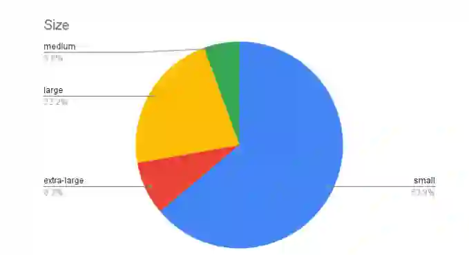 图 1.4 不同规模数据集的比例 不同规模数据集的比例,其中 “小 ”表示少于 50,000 个样本,“中 ”表示介于 50,000 至 100,000 个样本之间,“大 ”表示介于 100,000 至 500,000 个样本之间,“特大 ”表示超过 500,000 个样本。.