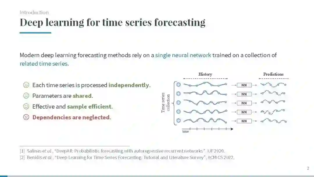 深度学习在时间序列处理中的成功应用,通常涉及在一组(相关的)时间序列上训练单一神经网络。时间序列之间的成对关系可以通过考虑一个(可能是动态的)图来建模,覆盖整个时间序列集合。在这种背景下,基于图的方法将标准的深度学习方法在时间序列处理上的应用提升了一个层次。近年来,图机器学习的理论和实践进展使得采用这种方法变得特别有吸引力且具有时效性。