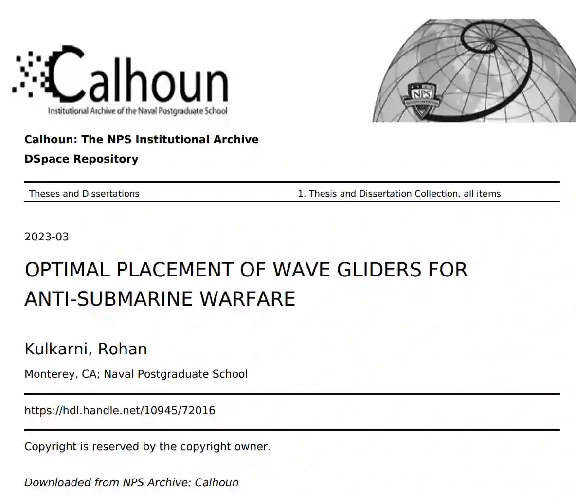 为了利用无人系统提供的无数优势,近年来,它们在军事行动中的地位越来越突出。无人系统,在这里是指无人水下航行器(UUV),被用于各种任务,如海洋学、反地雷、情报、监视和侦察(ISR),仅举几例。最近,UUV在反潜战(ASW)领域的使用也有所发展。本论文探讨了在反潜战中使用 "波浪滑翔机"--一种配备了被动阵列的UUV。该方案围绕着反潜波浪滑翔机在AUO中的最佳位置发展,以最大限度地提高探测到穿越该地区的敌方潜艇的概率。开发了一个模型来计算具有特定估计声纳范围(ESR)的特定数量的波浪滑翔机所累积的探测概率。