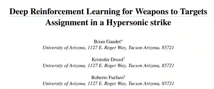 利用深度强化学习(RL)来优化针对多目标的多车高超音速打击的武器与目标分配(WTA)策略。目标是在每一集中最大化被摧毁目标的总价值。每个随机生成的事件都会改变高超音速打击武器(HSW)和目标的数量和初始条件、目标的价值分布以及 HSW 被拦截的概率。们将此 WTA 策略的性能与使用非线性整数编程(NLIP)推导出的基准 WTA 策略的性能进行了比较,发现 RL WTA 策略的性能接近最优,计算速度提高了 1000 倍,允许实时操作,有利于任务终局的自主决策。