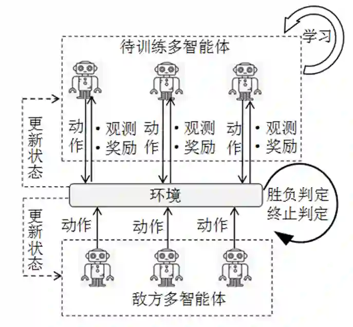 人工智能(AI)必然离不开人工智能之父——阿兰•图灵,对于机器是否能够思考的问题,他提出了著名的图灵测试,即让1个人和1台机器作为2个受试者(多在暗处),与他们隔离的测试者向他们提各种问题,由2个受试者回答,若测试者分辨不出2个受试者中谁是人谁是机器,那么认定该机器能够思考。人机对抗从广义上说也是图灵测试的一个重要手段,可看作智能体性能的验金石。 人机对抗是一种人与机器相互博弈的方式,人机对抗涉及人、机器(智能体AI)和环境等要素。其中,人指人类;机器指AI或人创造的机器;环境指人机对抗中的规则和对局形式等信息,如在德州扑克中,己方和对方的牌均为环境的一部分。根据人机对抗中获得的环境信息,可将对弈分为完全信息博弈、不完全信息博弈(指没有参与者能够获得其他参与者的行动信息)和不完全信息多智体博弈。其中,完全信息博弈包括Deep Blue和AlphaGO等棋类游戏,游戏对弈双方均能清楚地观察到棋盘上所有棋子的位置以及对手的动作决策;不完美信息博弈则包括了麻将和德州扑克等牌类游戏,这类游戏最大特点是拥有隐藏信息,且随着隐藏信息数量不断增加,做出正确决策的难度也呈指数级增加;不完全信息多智体博弈更复杂,如在王者荣耀与Dota等即时战略游戏中,每个独立的智能体不仅需考虑隐藏信息的干扰,还需准确分析对局形式,在竞争与合作、作战与撤退以及获取资源与转化资源的复杂情况下做出最优决策。