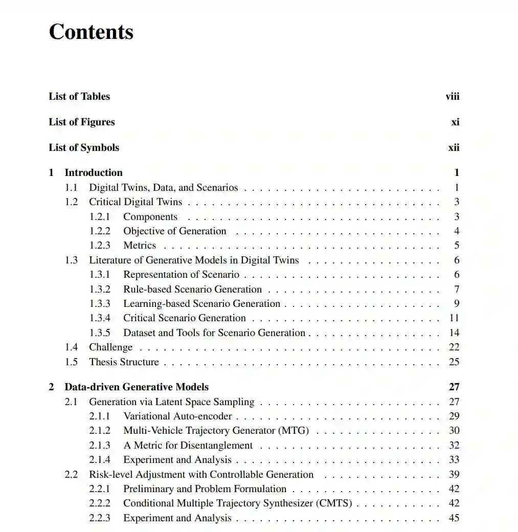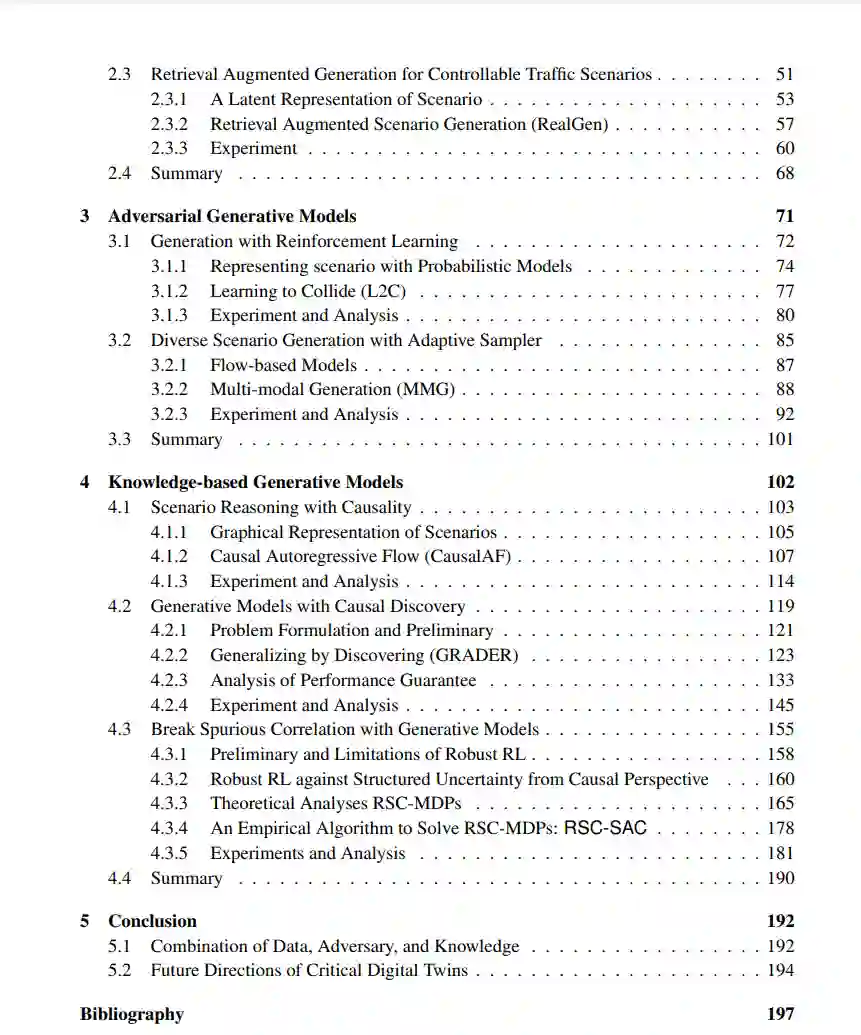 我的博士研究旨在利用生成式人工智能来探索两个关键问题:(1)现有数据中哪些场景是关键的,(2)如何在数字孪生体中生成这些场景。该提案首先定义关键场景及其相应的优化问题,随后深入探讨三种不同类别的场景生成框架:数据驱动生成模型、对抗生成模型和知识引导生成模型。本论文的结论是结合不同视角的生成资源并通过优化数据飞轮来改进未来方向。