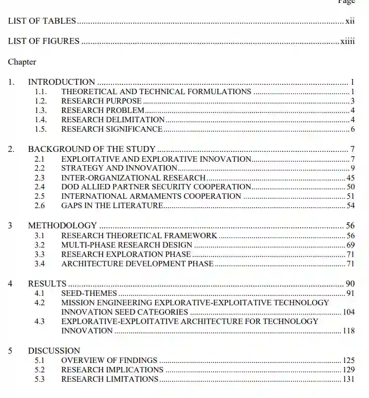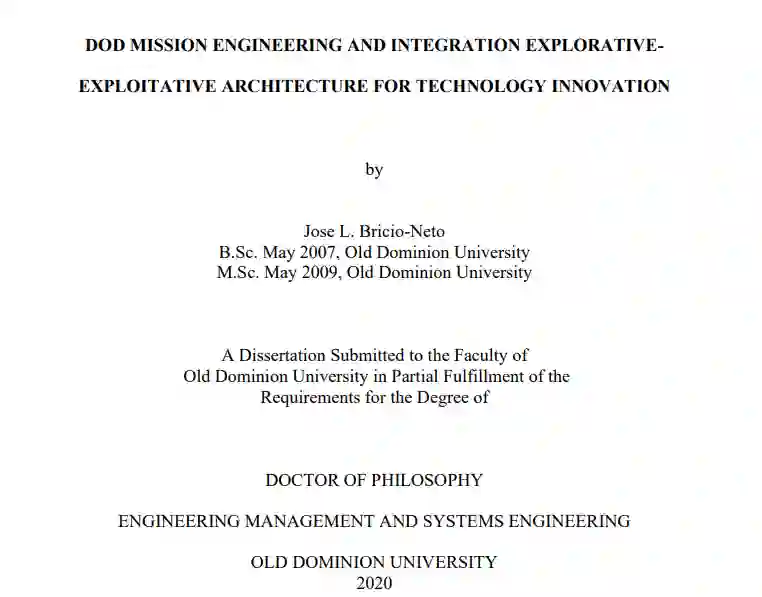 理论:本研究的种子类别、架构观点和命题将 Benner & Tushman (1996)、Rogers (2003) 的探索-开发式创新以及创新扩散从技术周期和竞争背景下以利润和市场份额为中心的表现扩展为更广泛的探索-开发式创新的跨部门模型,同时考虑到更广泛的技术周期、社会经济目标和社会福祉背景下的其他组织、管理、领导和资源特征。美国国防部和军事任务与战略规划结构。任务工程与集成命题功能基于 Sousa-Poza(2016 年)在复杂情况下任务工程连续体中的任务工程功能。