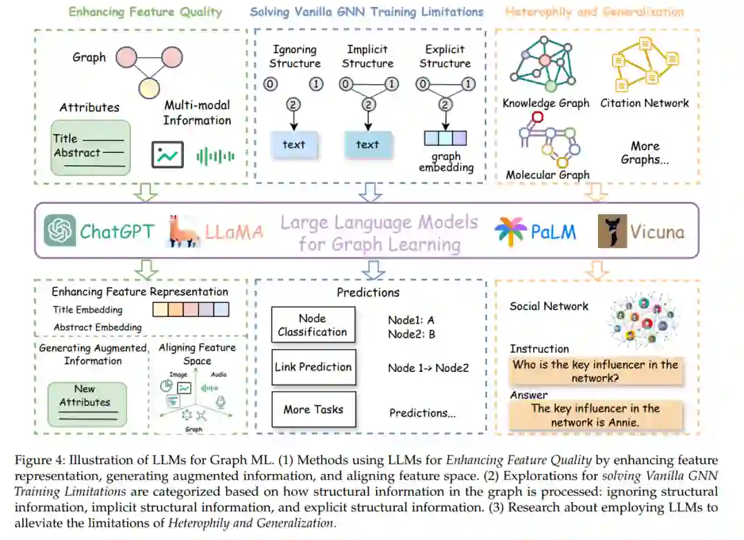 我们详细描述了从早期图学习方法到LLMs时代最新的GFMs的演变; 我们提供了当前LLMs增强的Graph ML方法的全面分析,突出了它们的优势和局限,并提供了系统的分类; 我们彻底调查了图结构应对LLMs限制的潜力;