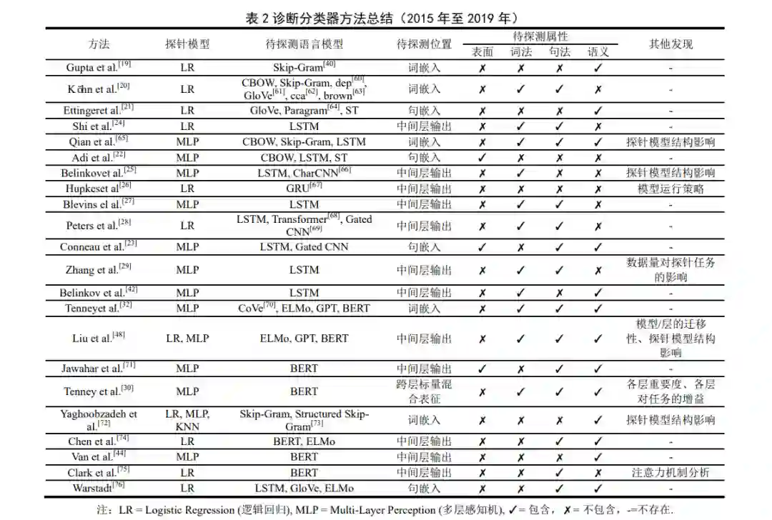 随着大规模预训练模型的广泛应用,自然语言处理的各领域(如文本分类和机器翻译)均取得了长足的发展.然 而,受限于预训练模型的“黑盒”特性,其内部的决策模式以及编码的知识信息被认为是不透明的.以 OpenAI 发布的 ChatGPT 和 GPT-4 为代表的先进预训练模型为例,它们在各领域取得重大性能突破的同时,由于无法获知其内部是否真正 编码了人们期望的世界知识或语言属性,以及是否潜藏一些不期望的歧视或偏见现象,因此仍然无法应用于重视安全性和 公平性的领域.近年来,一种新颖的可解释性方案“探针任务”有望提升人们对预训练模型各层编码的语言属性的理解.探针 任务通过在模型的某一区域训练辅助语言任务,来检验该区域是否编码了感兴趣的语言属性.例如,现有研究通过冻结模型 参数并在不同层训练探针任务,已经证明预训练模型在低层编码了更多词性属性而在高层编码了更多语义属性,但由于预 训练数据的毒性,很有可能在参数中编码了大量有害内容.本篇综述中,我们首先介绍了探针任务的基本范式,包括任务的 定义和基本流程;然后对自然语言处理中现有的探针任务方案进行了系统性的归纳与总结,包括最常用的诊断分类器以及 由此衍生出的其他探针方法,为读者提供设计合理探针任务的思路;接着从对比和控制的角度介绍如何解释探针任务的实 验结果,以说明探测位置编码感兴趣属性的程度;最后对探针任务的主要应用和未来的关键研究方向进行展望,讨论了当 前探针任务亟待解决的问题与挑战.