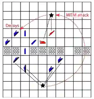 在人类的决策中,来自不同领域的信息可以结合起来,产生意想不到的效果。心理上的McGurk效应是指口型"ga"和听觉上的音节"ba"在时间上有很强的同步性,从而产生幻觉"da"。虽然多感官整合似乎没有在C2决策中得到探索,但MDO中多个领域的汇合,特别是其在穿透和分解整合阶段的高容量和高速度,可能会产生意想不到的非线性跨领域的相互作用(这可能有助于"战争迷雾")。图11说明了一个例子,在这个例子中,实际迹象(导弹)和坦克诱饵(由中间人[MITM]网络攻击产生)的组合可以协同作用,迫使敌方单位向左侧缺口移动。为网络欺骗创造趋同的迹象线是一种普遍的策略,然而特定的欺骗模式可能比其他模式更有效。例如,人们认为大脑会将相似或相关的迹象分组,以进行有效的处理(如格式塔分组),这样就可以克服信息瓶颈(如处理七个以上的名义项目,从而减少单个项目的影响)。如果进行每一次网络攻击都会产生一定的成本或风险,那么了解如何将这些成本分配到不同的线索特征中,以便以最小的风险提供最有效的影响可能是有益的(例如,如果MITM攻击产生导弹诱饵,那么它的效果可能会降低,甚至是反作用)。了解不同的线索组合如何被不同的士兵所感知,也可能是有意义的。具有不同偏见或处于不同角色或梯队的指挥官可能对相同的迹象组合有不同的感知、解释或行动(例如,一个诱饵的有效性可能取决于它与目标指挥官的距离以及与他的决策过程的相关性)。更高级的策略可能包括主动防御(例如,通过 "蜜罐 "策略[图12]),以提高网络欺骗的有效性。为了给MDO提供超人的能力,人工智能决策辅助工具可能需要根据即时可用的迹象在多个领域协助生成可信的诱饵,以网络的速度迅速调整这些展示,并保持虚拟和现实世界之间的一致性,以保持幻觉的有效性。