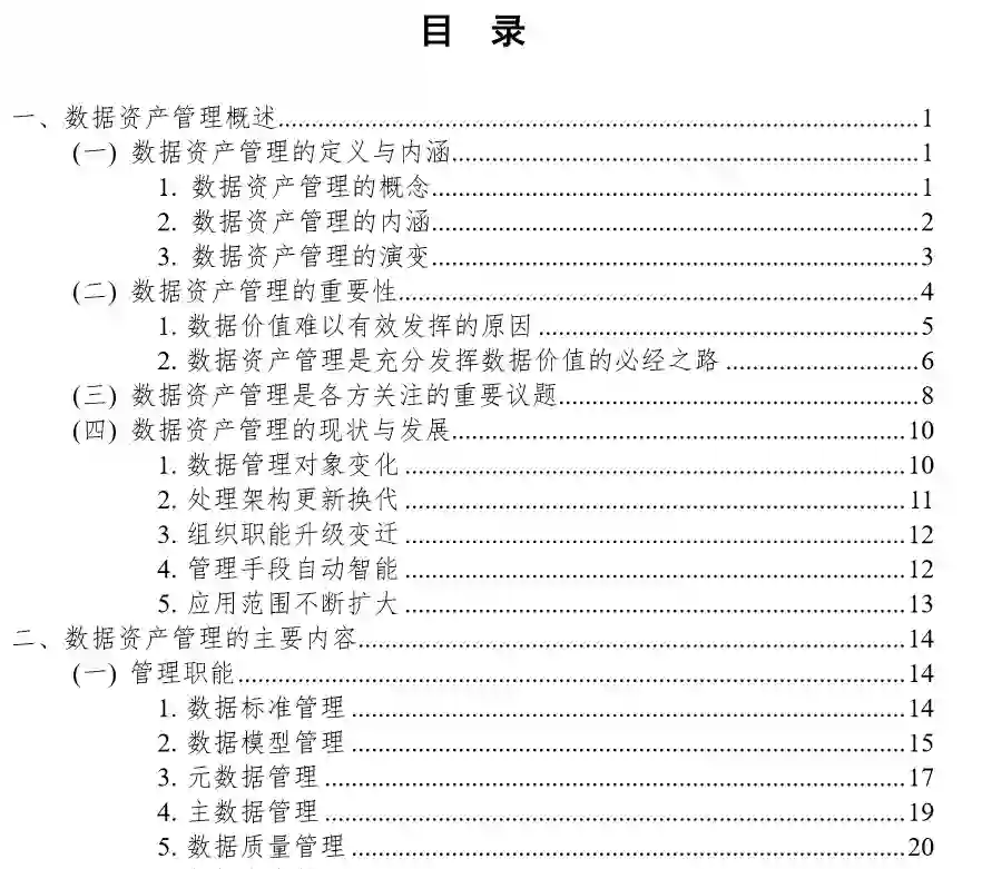 本白皮书在《数据资产管理实践白皮书3.0》的基础上,以全面盘点数据资产、不断提升数据质量、实现数据互联互通、提高数据获取效率、保障数据安全合规、数据价值持续释放等角度,通过权威数据和典型事件,生动剖析了数据资产管理的重点内容和目标。在原有管理职能的介绍下,尝试说明数据资产化管理的关键活动步骤,并在实施步骤方面,增加了各实施阶段的具体输出物,并增加了“数据价值管理工具”和“数据服务管理工具”,更好的指导企业搭建数据资产管理平台,开展数据资产管理相关工作。