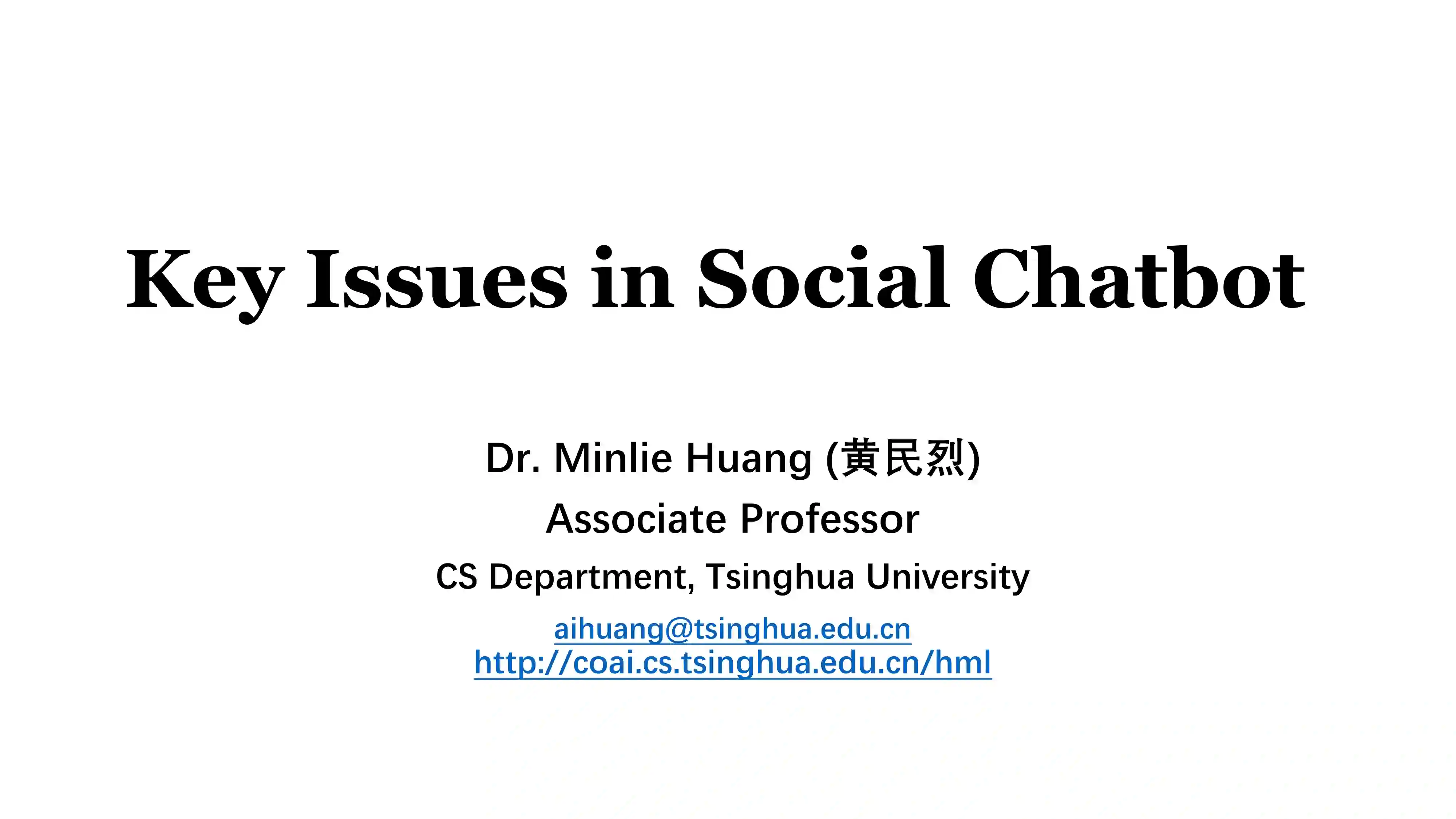 个人简介:清华大学计算机系副教授,博士生导师,计算机系智能技术与系统实验室副主任。研究兴趣主要集中在人工智能、深度学习、强化学习,自然语言处理如对话系统、阅读理解、情感与情绪智能等。获得2019年MSRA合作研究奖,2018年“钱伟长中文信息处理科学技术奖汉王青年创新奖”,IJCAI-ECAI 2018杰出论文奖、CCL 2018最佳系统展示奖、NLPCC 2015最佳论文奖,2016、2017年两次入选PaperWeekly评选的最值得读10/15篇NLP论文之一;其关于情绪化聊天机器人的工作被MIT Technology Review、NVIDIA、英国卫报(The Guardian)、参考消息、新华社等媒体广泛报道,故事生成的工作被TechXplore报道。已超过80篇CCF A/B类论文发表在ACL、IJCAI、AAAI、WWW、SIGIR、EMNLP、KDD、ACM TOIS等国际顶级或主流会议及期刊上。曾担任AAAI 2019、IJCAI 2019、IJCAI 2018(杰出SPC)、IJCAI 2017的高级程序委员,担任ACL 2016、EMNLP 2019/2014/2011,IJCNLP 2017领域主席,长期担任ACM TOIS、TKDE、TACL、TASLP等顶级期刊的审稿人。获得专利授权近10项,其中2项专利技术授权给企业应用。他的主页地址:http://coai.cs.tsinghua.edu.cn/hml