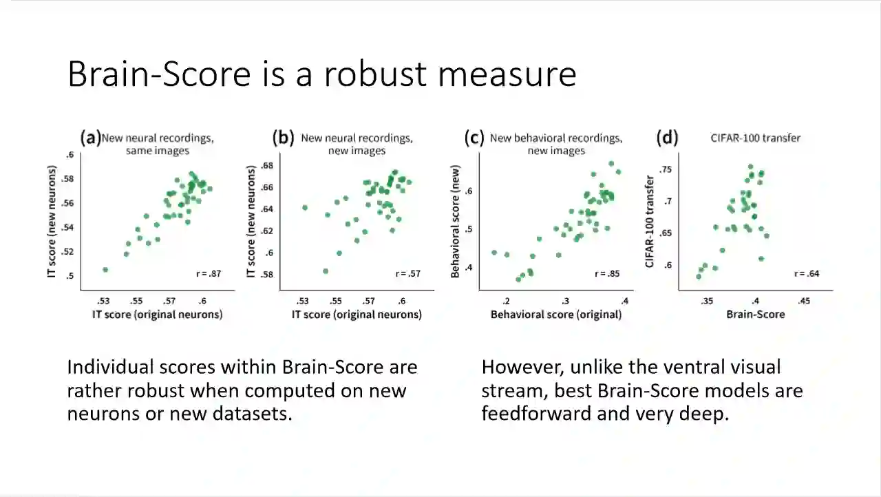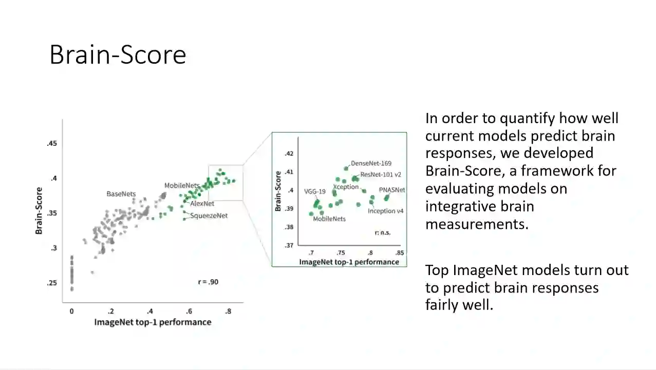 简介: 尽管最初受到大脑解剖学的启发,但在过去的几年中,这些人工神经网络已经从AlexNet中的简单的八层体系结构演变为更加复杂的体系结构,由于机器学习的典型深层模型的层数众多且缺少生物学上重要的连接,因此通常难以映射到大脑的解剖结构。在这里,我们证明,与大脑更好的解剖结构对齐以及在机器学习以及神经科学措施方面的高性能不一定是矛盾的。我们开发了CORnet-S,这是一种浅神经网络,具有四个解剖学映射的区域和经常性连接,并在Brain-Score(一种新的大规模的神经和行为基准测试组合)的指导下进行了开发,用于量化灵长类动物腹侧视觉流模型的功能保真度。尽管比大多数模型要浅得多,但CORnet-S是Brain-Score上的顶级模型,其性能优于ImageNet上类似模型。此外,我们对CORnet-S电路变体的广泛分析表明,是Brain-Score和ImageNet top-1性能的主要预测因素。最后,我们报告了CORnet-S“ IT”的时间演变 神经种群类似于实际的猴子IT种群动态。综上所述,这些结果使CORnet-S(一种紧凑的循环神经网络)成为灵长类动物腹侧视觉流的当前最佳模型。