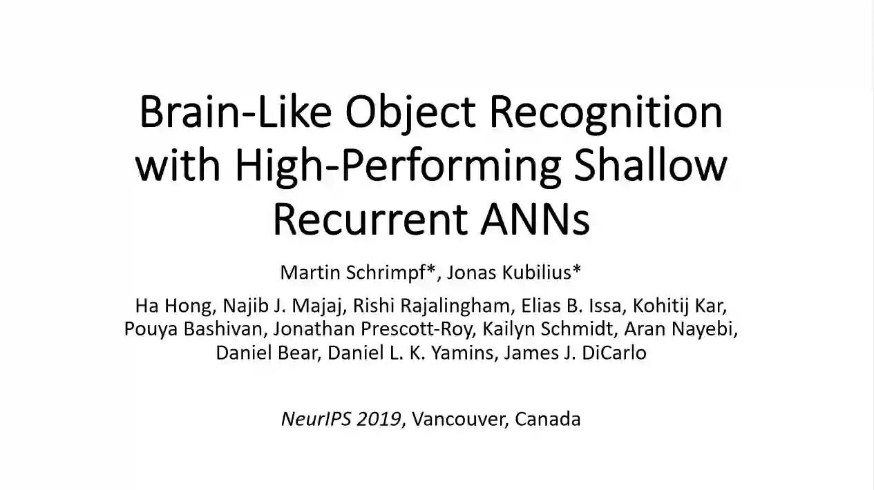 题目: Brain-Like Object Recognition with High-Performing Shallow Recurrent ANNs