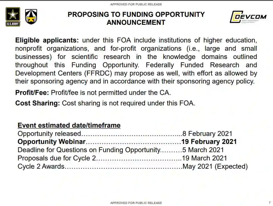 DEVCOM ARL 专注于发展对作战人员概念的基本理解和可能的艺术,通过研究,极大地提高基于空中和地面的自主车辆感知、学习、推理、通信、导航和物理能力,以增强和增加在复杂和有争议的环境中的机动自由。