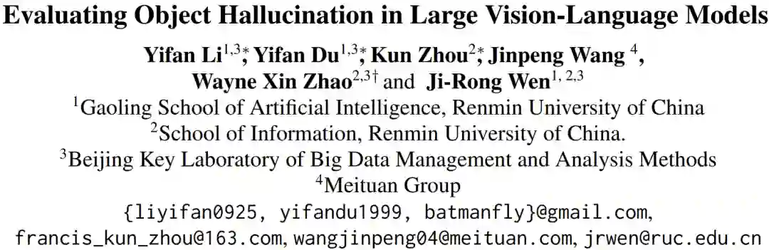 论文题目:Evaluating Object Hallucination in Large Vision-Language Models 论文链接:https://arxiv.org/abs/2305.10355 论文代码:https://github.com/RUCAIBox/POPE