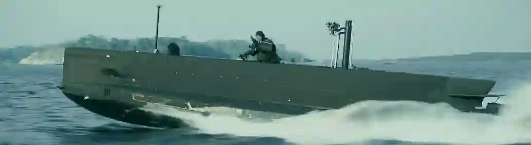 这艘 12 米长的船只可容纳八人,包括两名船员。船舱可以重新配置,以容纳各种任务有效载荷,而不需要减少人员数量。单体船体由碳纤维和复合材料核心构成。封闭式船舱的流线型设计减少了水面作业时的雷达截面。