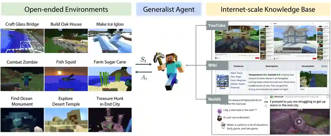 MineDojo [16]:当一个语言模型智能体遇到不会的任务,可以从知识库中查找学习资料,然后在资料的帮助下,完成这个任务。