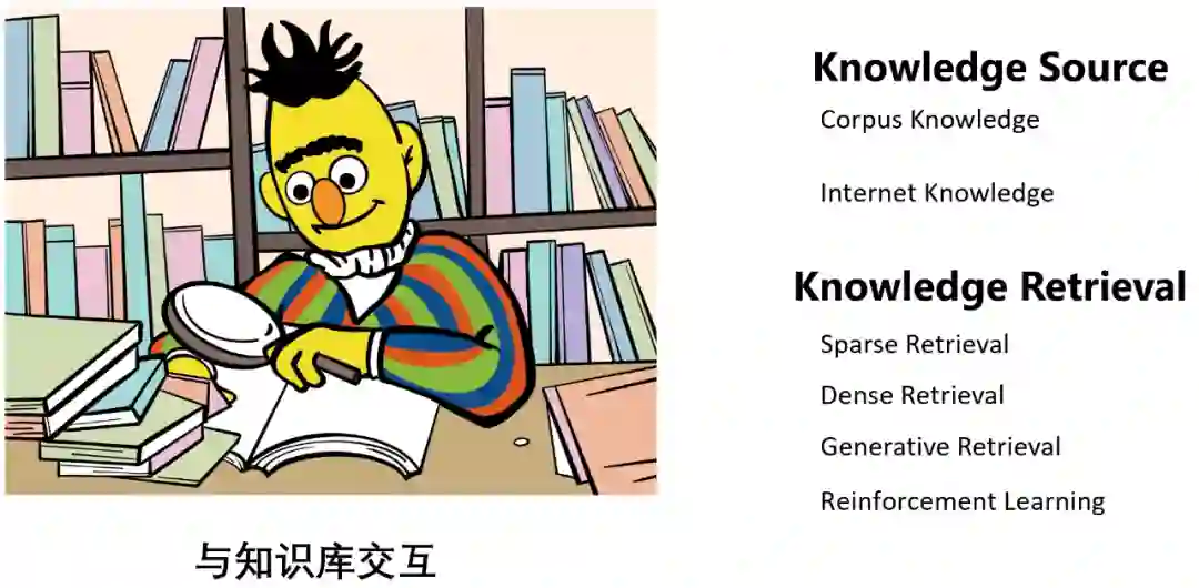 “Knowledge Source” 分为两种,一种是封闭的语料知识 (Corpus Knowledge), 如 WikiText 等 [15];另一种是开放的网络知识 (Internet Knowledge), 比如使用搜索引擎可以得到的知识 [14]。