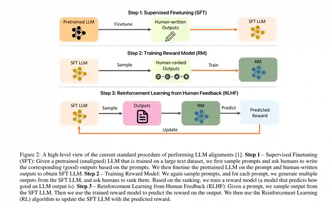 自然语言处理(NLP)的格局随着大型语言模型(LLMs)的出现而发生了深刻的变革。这些语言模型的特点是参数数量庞大,通常达到数十亿,且在大量的数据语料库上进行训练[4]。近年来,LLMs的影响确实是革命性的,它们彻底改变了学术研究和各种工业应用。值得注意的是,OpenAI开发的LLMs,包括ChatGPT [5, 6],取得了卓越的成功,其中ChatGPT被认为是迄今为止增长最快的网络平台[7]。使当前的大型语言模型(LLMs)变得既可用又受欢迎的关键因素之一是对齐技术。对齐是确保LLMs按照人类的价值观和偏好行事的过程。这一点通过LLM的发展演变和公众反馈的整合变得明显。
