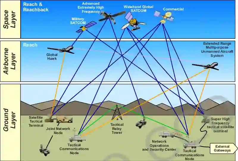 现代网络使海军和海军陆战队的全球指挥、控制、通信、计算机、情报、监视和侦察(C4ISR)基础设施得以实现,从弹药制导到越洋导航,海军和海军陆战队都依赖于这些基础设施。利用网络实现作战目的的行为被称为 "网络中心战"(NCW),它分为三个领域:用于战场局域网的表层、提供战区广域覆盖的机载层以及用于海军和海军陆战队全球指挥与控制系统的空间层(见图 1)。 2016 年《海军网络环境战略》(NNES)将这些网络定义为所有形式通信和数据处理的 "基本作战骨干"。