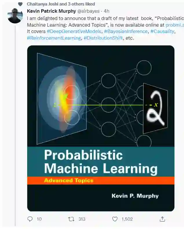 谷歌研究员Kevin Patrick Murphy的机器学习第三部《概率机器学习:高级主题》来了!共有1350页pdf,本书着重于概率建模和推理,用于解决四种主要任务:预测(如分类和回归)、生成(如图像和文本生成)、发现(如聚类、降维和状态估计)和控制(决策)。