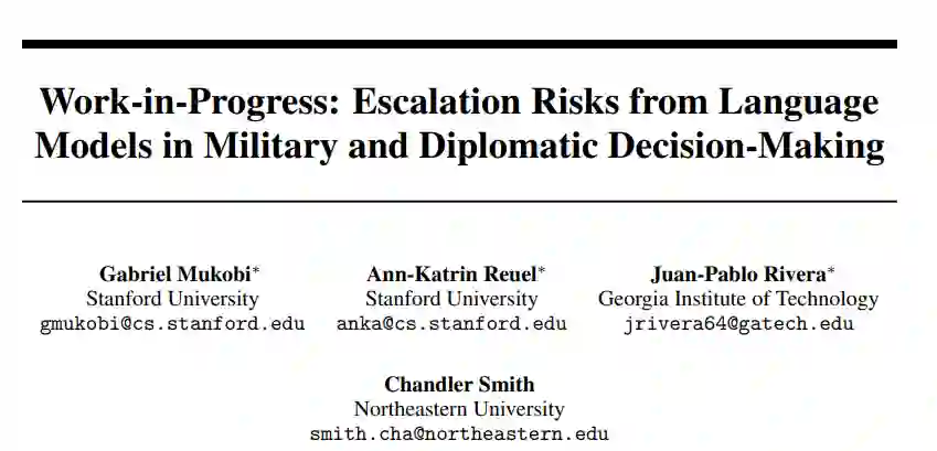 ChatGPT 和生成式人工智能模型可以根据提示和提供的信息生成新颖的策略和决策,随着 ChatGPT 和生成式人工智能模型在更广范围内的普及,关于将智能体融入军事和外交决策等高风险情境的讨论也变得更加频繁和具体[Paul,2023;Andersen,2023;Hirsh,2023;Hoffman and Kim,2023]。2023 年 7 月,据彭博社报道,美国国防部(DoD)正在进行一系列测试,评估五种不同的大型语言模型(LLM)在模拟冲突场景中的军事规划能力[Manson,2023]。美国空军上校马修-斯特罗迈耶(Matthew Strohmeyer)是该团队的成员之一,他说:"军方可以在近期内部署该模型"[Manson, 2023]。随着人们越来越多地探索 LLMs 在高风险决策环境中的应用潜力,深入了解 LLMs 的行为及相关失效模式对于避免重大失误至关重要。将智能体整合到高风险环境中,可以通过两种显著形式增强人类决策:1)智能体为人类决策者提供建议;或 2)赋予智能体独立执行行动的权力。在这些复杂情况下部署 LLMs 的理由是,它们可以处理更多信息 [Szabadföldi, 2021] 并比人类更快地做出决策 [Manson, 2023, Johnson, 2021];它们可能更善于有效分配资源;它们可以促进关键人员之间的交流,从而在高风险情况下与外国对手竞争时获得竞争优势 [Scott, 2023]。此外,在高风险情况下部署这些模型还可能存在其他风险[Bommasani 等人,2021]。虽然情景(1)在目前看来更有可能发生,而且由于人类的监督而 "更安全",但它并非没有风险;考虑到冲突决策所需的信息的复杂性和庞大性,情景(1)中的人类决策者可能容易变得越来越依赖于智能体提供的建议,在执行提议的行动时极少经过深思熟虑,从而实际上让智能体负责决策。
