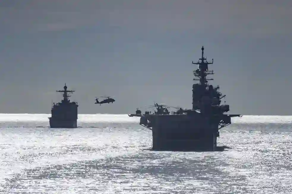 图:2023年1月28日,美国海军一架MH-60海鹰准备在黄蜂级两栖攻击舰巴丹号(LHD 5)上着陆,这是两栖中队/MEU一体化训练(PMINT)海峡过境演习的一部分。图片来源:美国海军陆战队/米歇尔-克拉克(Michele Clarke)上士。