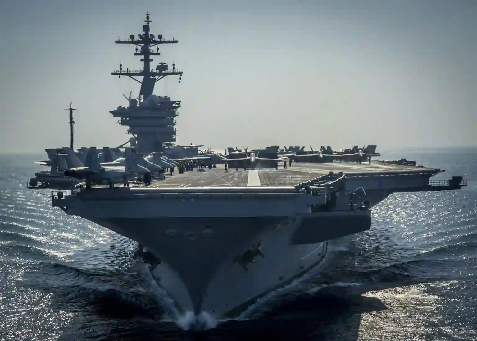 图:尼米兹级航空母舰卡尔-文森号准备在阿拉伯湾执行飞行任务。图片来源:美国海军/二级大众传播专家亚历克斯-金(Alex King)。