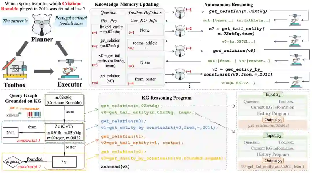 © 作者|蒋锦昊机构|中国人民大学研究方向|自然语言处理、大语言模型 知识图谱(KG)作为一种重要的知识来源,如何将其与大语言模型(LLM)相结合受到了学术界广泛的关注。考虑到 LLM 的通用性,通常以外挂 KG 的形式增强 LLM,一般被称为 协作增强 的方法。这类方法通常会设计一种在 KG 和 LLM 之间进行信息交互的机制以求解目标问题。然而,目前的交互机制不够自主和灵活且对闭源超大模型(例如 GPT-4)依赖程度较高。为解决上述问题,我们提出了一个名为 KG-Agent 的自主 LLM-based 代理框架,它使得一个相对小型的 LLM(7B)也能够在知识图谱上自主决策,完成推理过程。在 KG-Agent 中,我们整合了 LLM、多功能工具箱、基于知识图谱的执行器和知识记忆器,并设计了一个迭代机制,通过自主选择工具-更新记忆,以进行知识图谱推理。文章也同步发布在 AI Box 知乎专栏(知乎搜索 AI Box 专栏),欢迎大家在知乎专栏的文章下方评论留言,交流探讨!