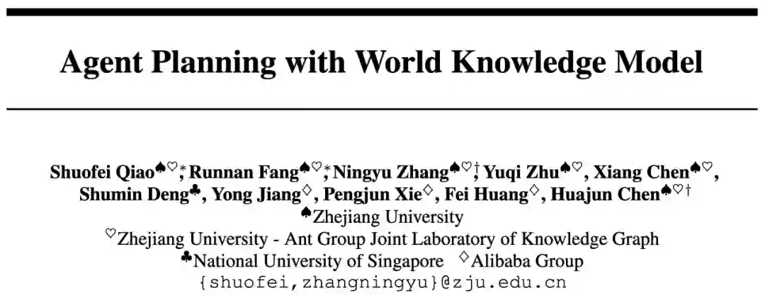 **论文题目:**Agent Planning with World Knowledge Model **本文作者:**乔硕斐(浙江大学)、方润楠(浙江大学)、张宁豫(浙江大学)、朱雨琦(浙江大学)、陈想(浙江大学)、邓淑敏(新加坡国立大学)、蒋勇(阿里巴巴)、谢朋峻(阿里巴巴)、黄非(阿里巴巴)、陈华钧(浙江大学) **发表会议:**NeurIPS 2024 **论文链接:**https://arxiv.org/abs/2405.14205 ****代码链接:https://github.com/zjunlp/WKM 欢迎转载,转载请注明出处